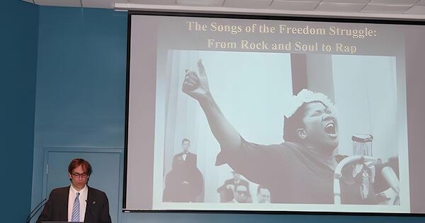 The Songs of the Freedom Struggle: From Rock and Soul to Rap explored the hidden meaning in popular music, according to Gilbert. “I hope I got people to think about the music they like through a different lens. There is a deeper, and sometimes hidden, meaning circulated within the music, especially by black musicians,” he said.