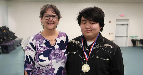 The above photo is of Sam Thompson with his mother, Jennifer Thompson. Sam is wearing his Biltmore medal.