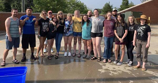 Students preparing for the finals in Radiography have a unique way of reviewing the material via water balloons.