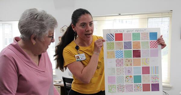 Over the course of several weeks, the residents worked with Carolina Village Wellness Coordinator Aleen Dailey to create a colorful heirloom quilt that visually represents the community’s collective life stories.